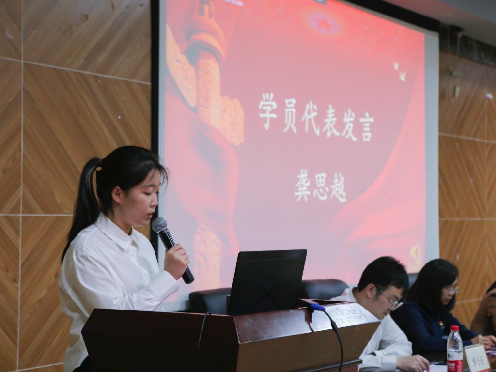 伴随着庄严的国歌声,开班典礼正式拉开序幕。学院党委副书记、分党校副校长刘洁作开班动员讲话,她指出,全面贯彻落实党的二十大精神的开局之年,学员们要深刻认识党的二十大重要里程碑意义,以强烈的政治责任感和使命感认真学习、宣传、贯彻党的二十大精神,在党校学习中坚决做到“两个维护”,下苦功,求真知;勤修身,重实践;辨是非,善决断。姜旭英老师宣读了党校的纪律规定,强调了党校的学习要求。学员代表龚思越同学在发言中谈道:“要努力上好党课,听党话,跟党走,把个人成长主动融入到以中国式现代化推进中华民族伟大复兴的伟大梦想当中。”