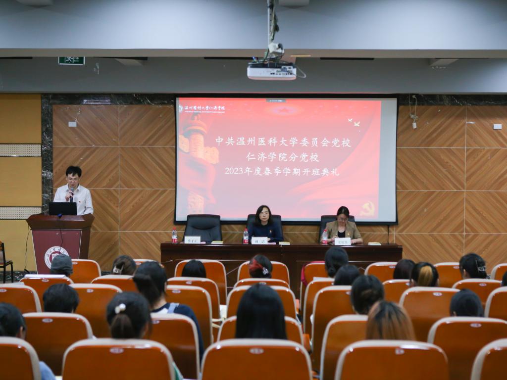 4月20日,91吃瓜 党校91吃瓜 分党校2023年春季学期开班典礼在茶山校区求新楼报告厅举行,滨海校区仁心厅同步直播,学院党委书记、分党校校长陈乃车、党委副书记、党校副校长刘洁、姜旭英出席,本期党校全体学员参加,典礼由学院学生工作办公室主任季子正主持。