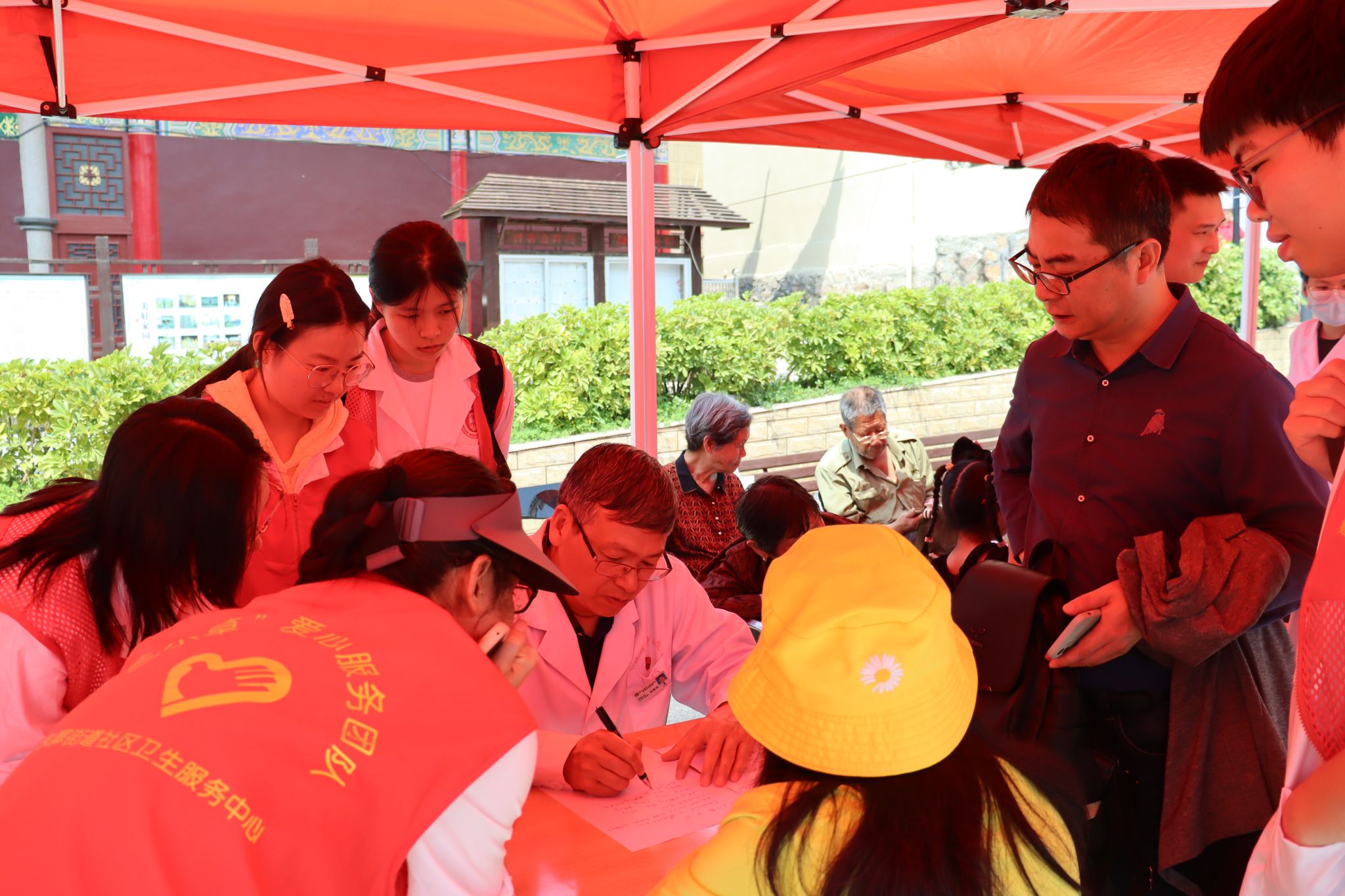 活动伊始,医学三系第一党支部中医学专业15名志愿者早早来到了中仑村的党群服务中心,紧接着志愿者们引导居民前往科普地点,市中医院黄兆明中医师、陶玉中医师、叶必宏中医师分别以通俗易懂的语言,向居民们系统讲解肿瘤的成因、早期症状及科学防控措施,强调“早筛查”的重要性,普及“早预防、早发现、早治疗”的健康理念。志愿者们也一同学习了肿瘤相关知识,深刻了解了肿瘤宣传周的重大意义。