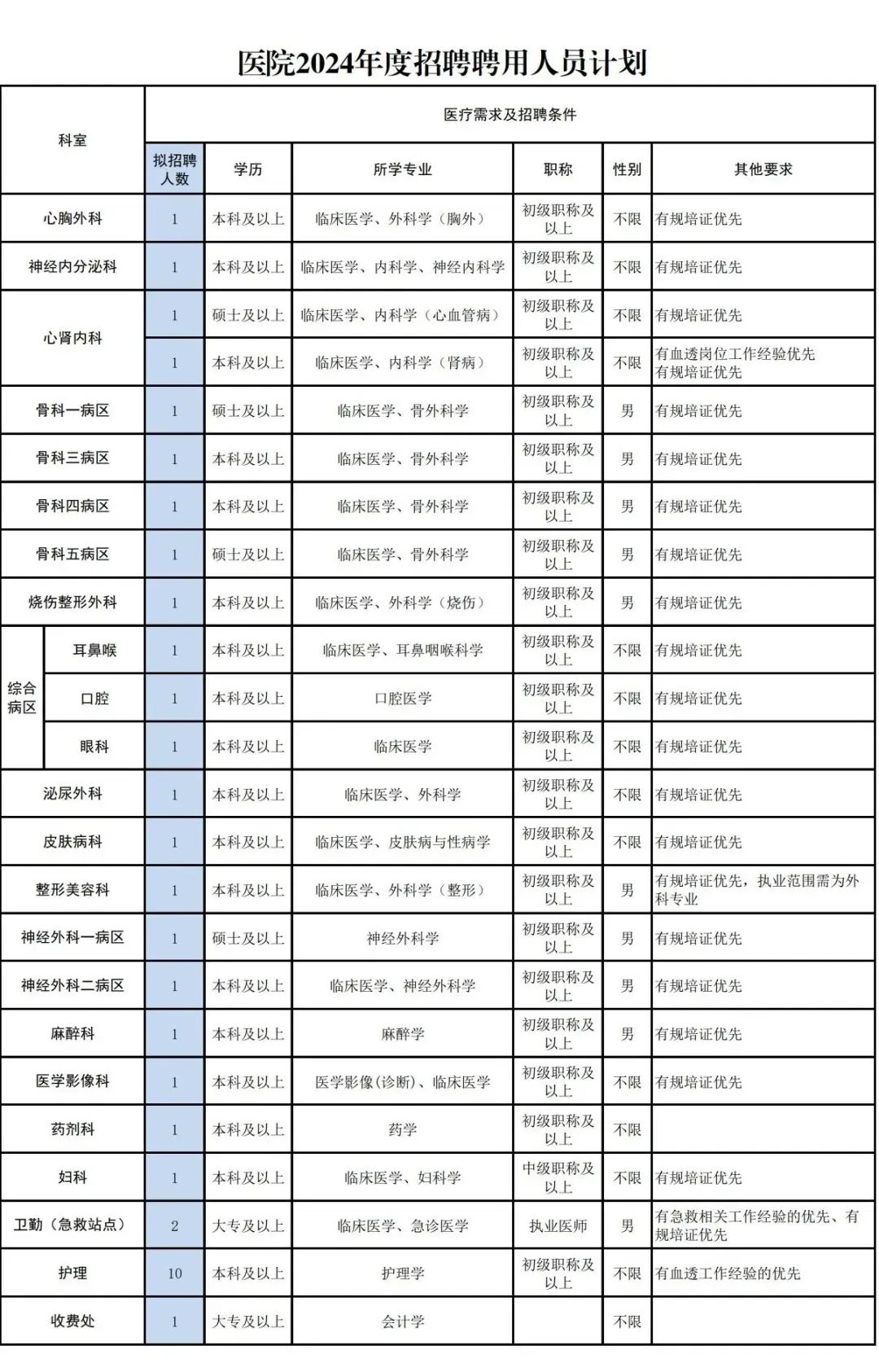 4.已取得国家认可招聘岗位所需专业的全日制学历、专业知识及业务能力和相应专业执业资格证书,有《住院医师规范化培训合格证书》的优先聘用。有工作经验及紧缺岗位相关条件可适当放宽。