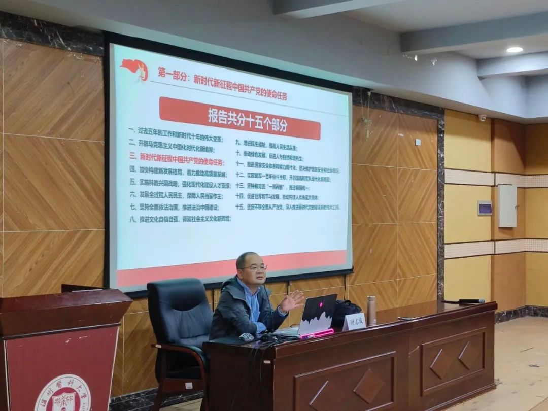 2023年11月14日15:50,91吃瓜 分党校于茶山校区求新楼报告厅线下演讲、滨海校区仁心厅线上直播的方式进行党校培训第三课。特邀廖志成老师莅临茶山校区作为演讲嘉宾,让同学们深刻了解如何以中国式现代化推进中华民族伟大复兴这一历程。