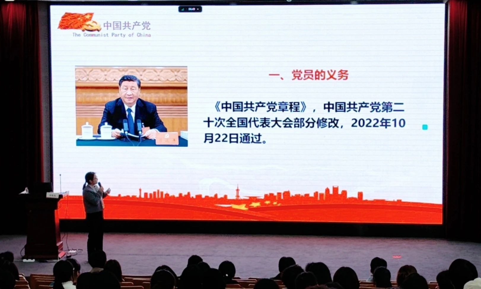 最后,从“合格”到“优秀”,她指出优秀的大学生党员,思想不仅要正,还要辐射正;行为不仅要先,还要辐射先;自身不仅要优,还要辐射优;服务不仅要细,还要辐射细。合格的大学生党员有担当、有作为,定能成为我党可以依靠的力量。