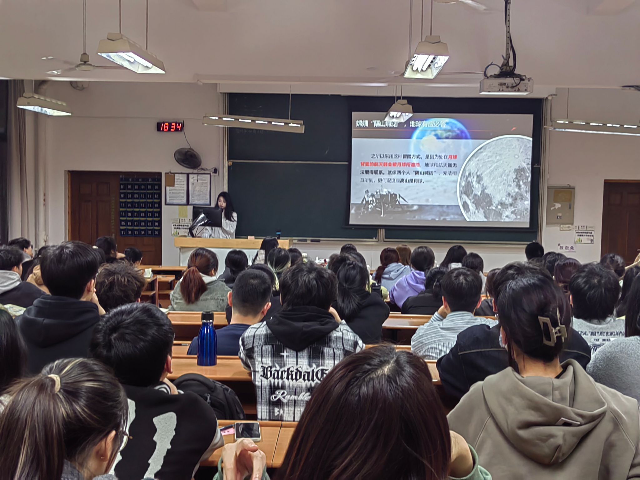 在演讲的最后,主讲人呼吁我们用习近平新时代中国特色社会主义思想为指引,按照党中央关于建设航天强国的决策部署,大力弘扬探月精神,以探月梦托举中国梦、航天梦,为和平利用太空,持续贡献中国智慧、中国力量。