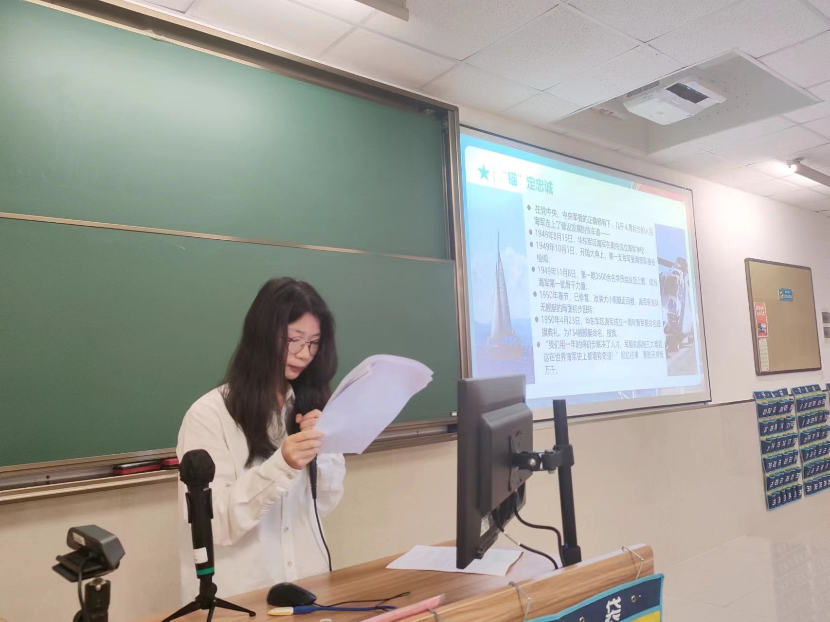 2024年5月15日,党建服务与人才培训中心在滨海校区1301教室和2101教室开展了主题为“奋楫扬帆风正劲,勇立潮头逐浪高”的一周看时事活动。主讲人分别从“锚”定忠诚、“舰”证时代、胜战航迹、和平乐章、时刻铭记、传承延续六个方面进行阐述。