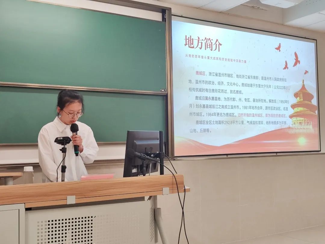 为了更好了解鹿城历史,传承红色记忆,党建服务与人才培训中心于2023年3月24日晚18:30于滨海校区2403开展高峰论坛活动,主讲人林锦婕同志主要从认识鹿城、鹿城现代化的被动发轫、鹿城现代化从被动到主动、鹿城成为改革开放的社会主义现代化聚集之地、新时代鹿城现代化先行五个方面展开讲述。