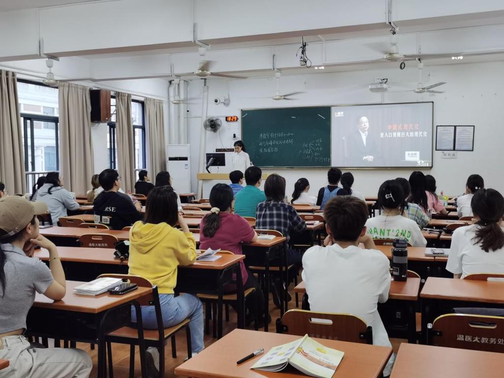 党的二十大报告提出热词“中国式现代化”,为了使同志们深入了解“中国式现代化”在基层的生动写照,党建服务与人才培训中心于2023年5月5日晚18:30于茶山校区7A411教室开展了主题为“搭乘着浙江省未来乡村创建的巨轮,温州鹿城农村正驶向‘中国式现代化’”的高峰论坛活动。主讲人方舟同志从“一村一幅共富产业蓝图”“一村一张独家文化名片”“在未来,还‘乡村’于乡村”“藤桥风光”四方面向我们讲述了温州鹿城农村向中国式现代化发展的进程。