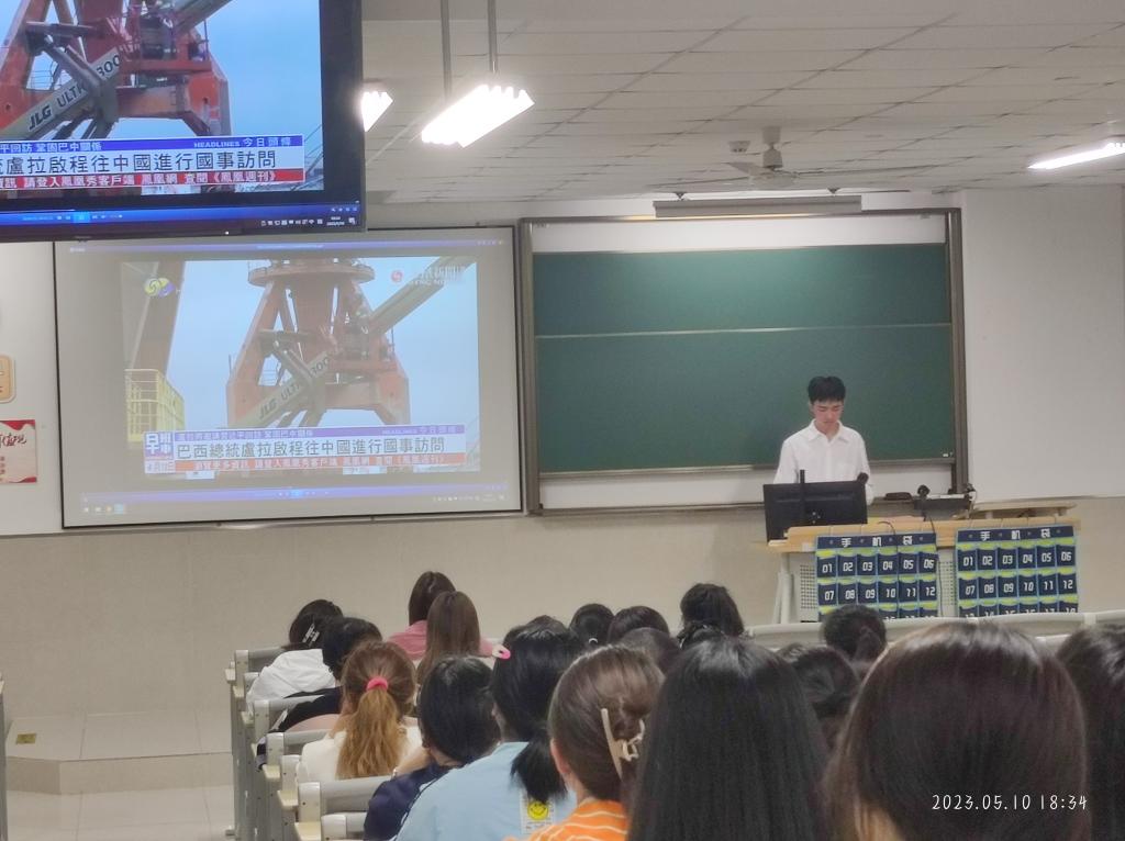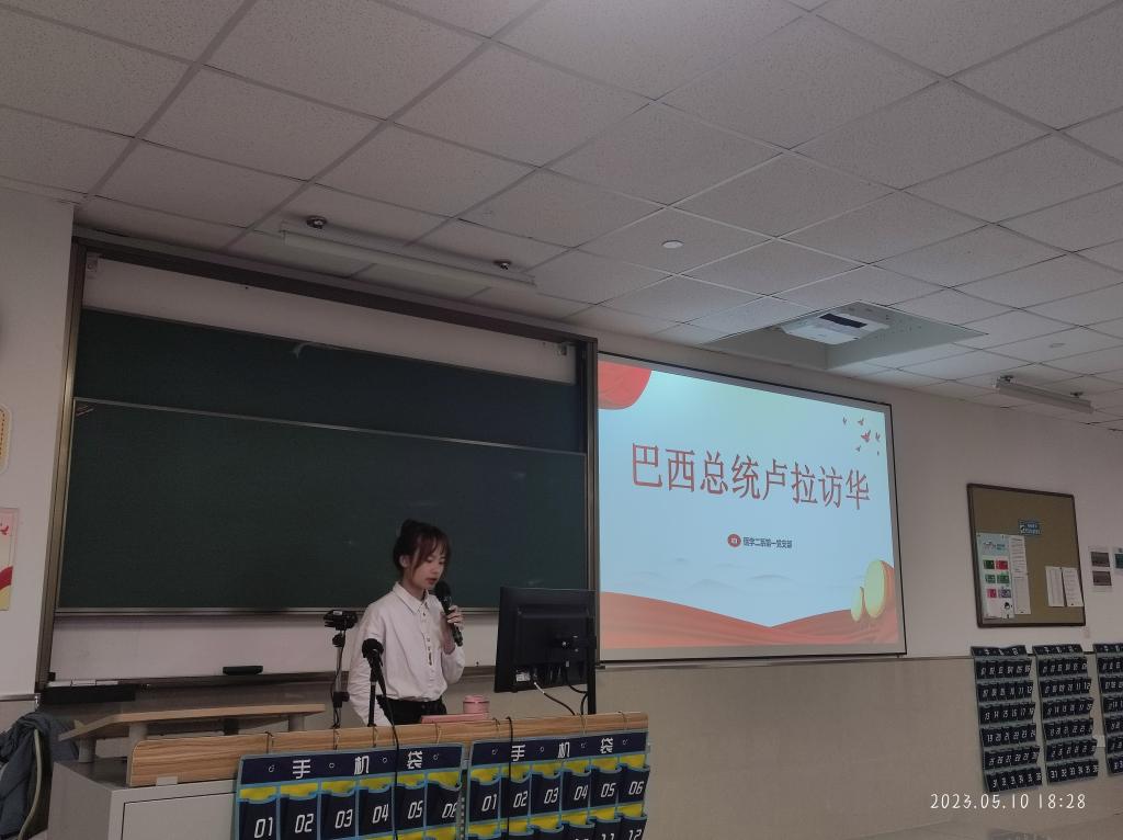 2023年5月10日晚六点三十分,党建服务与人才培训中心分别于茶山校区和滨海校区开展了以“巴西总统卢拉访华”为主题的一周看时事活动。主讲人从“卢拉生平介绍”、“访华前期”、“访华期间”、“会后总结”四个方面进行讲述。