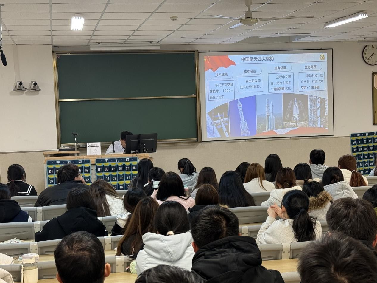 党建服务与人才培训中心于2025年11月19日晚18:30在茶山校区7AJ202和7AJ203和滨海校区1401教室开展了以“太空逐梦·科创赋能”为主题的一周看时事活动。主讲人从“高交会太空游”“太空游的探索之路”“科创驱动产业链升级”“科技与民生的深度联结”“科创时代的责任与实践”五个方面展开了详细讲述。