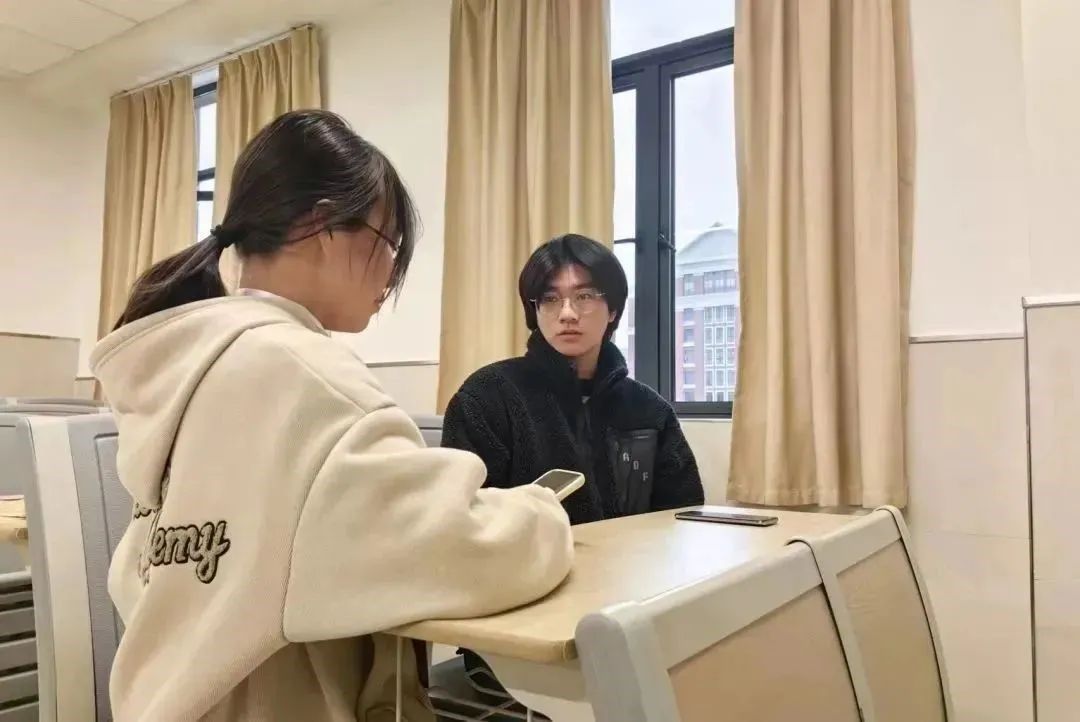秋末初冬,每当白日依山尽,夕阳余晖便透过朵朵云层,在树梢上落下万道金光,如霞光万丈。伴随着傍晚的微风和欲坠的夕阳,我们开始了此次采访,孙淼同学回答问题时的清醒而赤诚,温柔又勇敢,给我们留下深刻的印象。