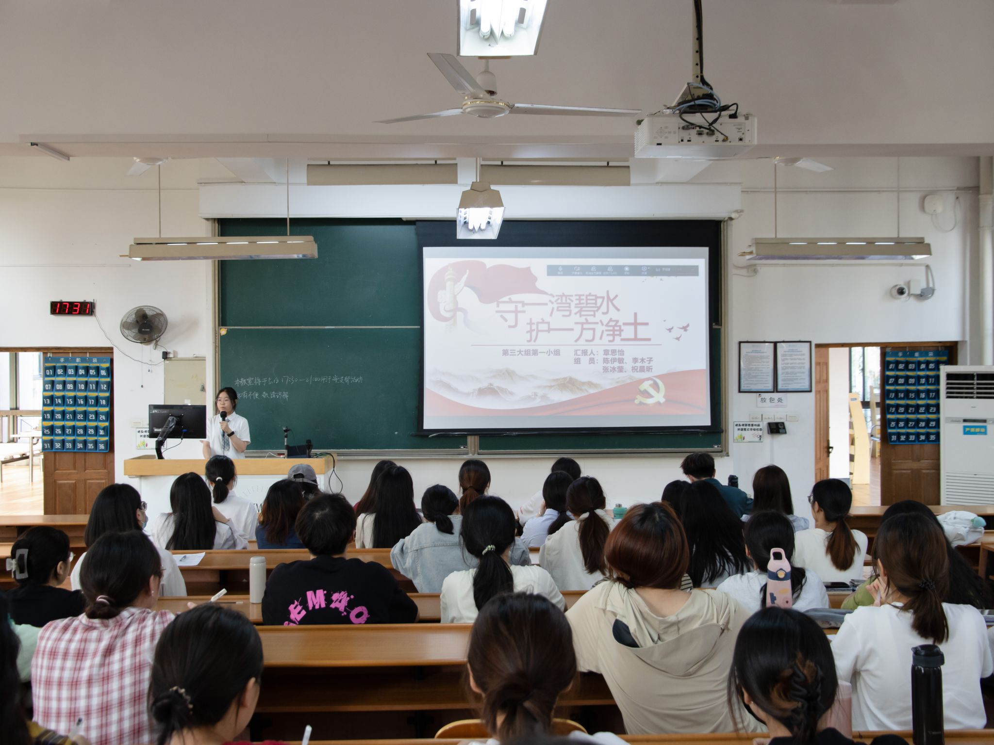 会上,第一小组以“守一湾碧水,护一方净土”为主题,讲述了水资源战争的应对策略,水资源分布的不平衡会破坏生态环境,使粮食安全受到威胁,最终影响社会稳定和世界安全。水是万物之源,新时代青年要养成节水意识,在日常生活中用实际行动保护水资源,培养节约用水的习惯,比如衣物集中洗涤,洗漱间隙随手关水龙头,使用节水型器具等。第二小组以“绿色航运新篇章,携手共创氢未来”为主题,向同志们介绍了氢能源在新时代政策支持下带来的机遇与挑战。氢能产业逐日走向成熟,担负起促进能源转型的重任,对我国早日实现碳达峰、碳中和目标,保障能源安全供给有着至关重要的意义。青年一代,更要在日常生活中树立节能环保的意识,减少对旧能源的依赖。第三小组以“星空之下,长河之上,望山河远阔”为主题,引出当代长城焕发的新价值,比如“数字长城”工程保护了东方文明的火种,填补了长城研究的空白,从而让更多人更好地了解中华人民优秀传统文化。青年一代要自觉传承中国优秀传统文化,增强自身的文化认同感、归属感、尊严感 ,讲清楚中华文化的独特创造、价值理念、鲜明特色,增强文化自信和价值观自信。