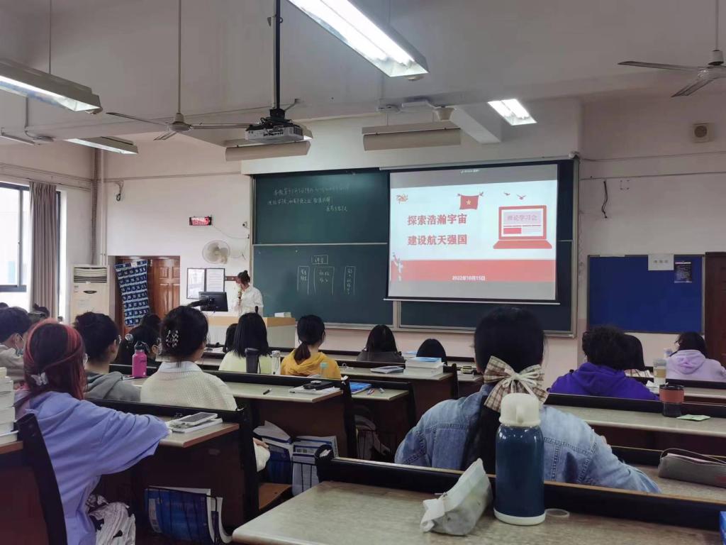 2022年11月5日下午13:30,91吃瓜 医学技术与药学系党支部于滨海校区2211和茶山校区6A307教室举行本学期第三次理论学习会,本次学习会的主题是:“探索浩瀚宇宙,建设航天强国”。