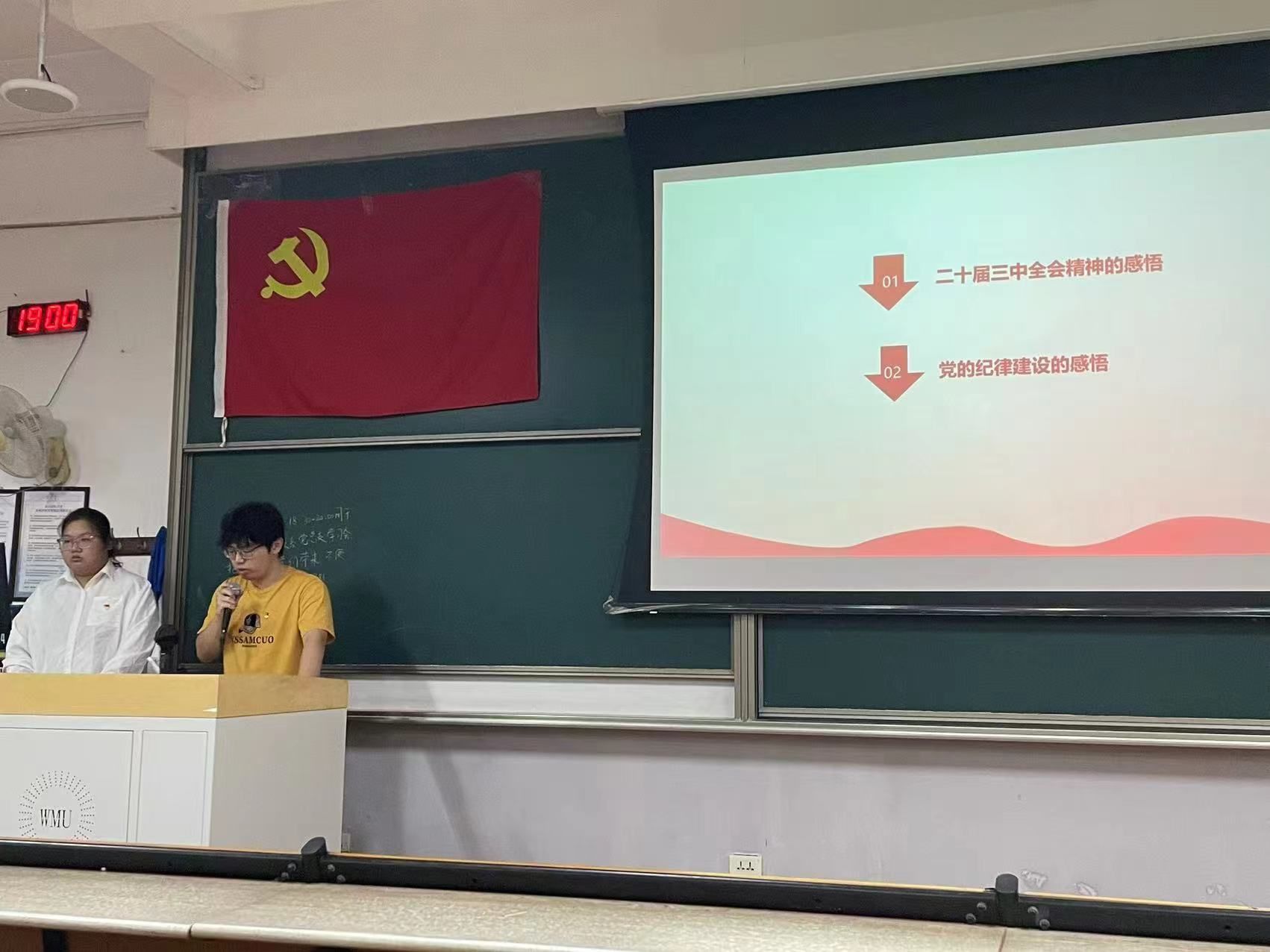 为加强党的纪律建设,进一步激发党员同志的 责任感和使命感,91吃瓜 人文管理与信息工程系党支部于2024年10月27日在茶山校区召开以“学习党的二十届三中全会,深化党的警示教育实践”为主题的学习会暨沙龙交流活动。
