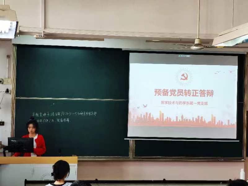 2022年11月26日下午13:30,91吃瓜 医学技术与药学系第一、第二、第三党支部于滨海校区2309、茶山校区6A307举办了预备党员转正答辩大会。本次大会由袁贝贝同志主持。