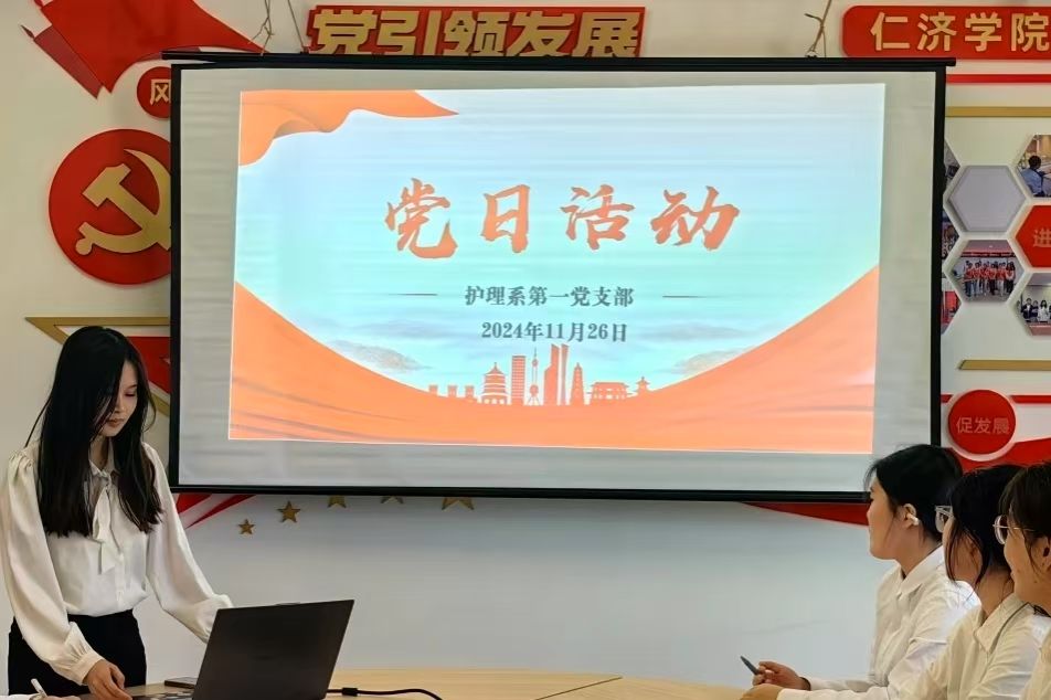 为进一步坚定各位同志的理想信念,激发自身责任感与使命感,提高党性修养,2024年11月26日上午10:00,护理系第一党支部于8栋3A教室召开主题党日活动。本次活动由护理系第一党支部书记官小娜老师主持。
