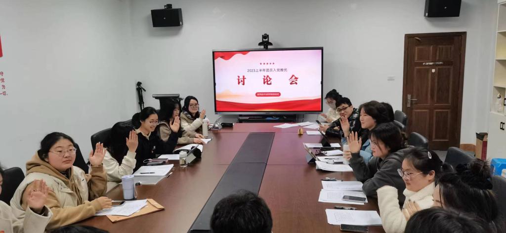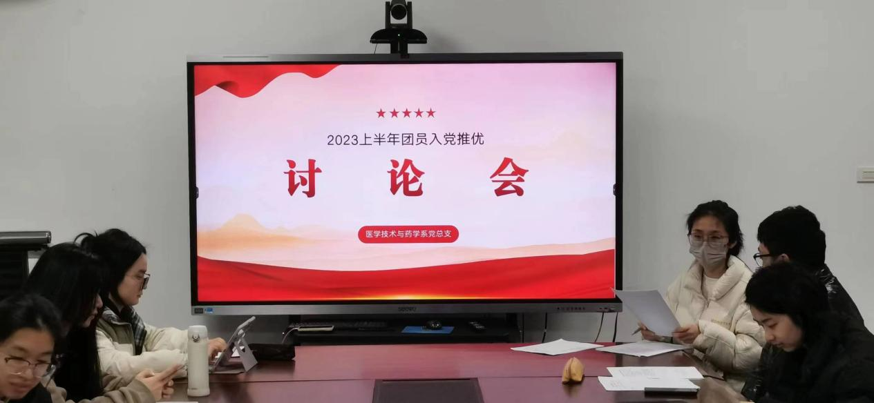 2023年3月27日晚18:30,医学技术与药学系党总支在7A113开展入党推优讨论会,本次会议由党总支负责人李孙洁同志主持,党总支组织委员、第一党支部书记李玉静老师线上参会。