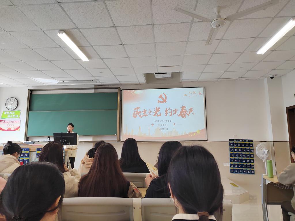 2023326日下午13:30,护理系第一党支部和护理系第二党支部组织生活会分别在滨海校区2308教室和钉钉线上举行。本次组织生活会的主题是“民主之光,约定春天”,分别由蒋佩彤和倪宁同志担任主持。