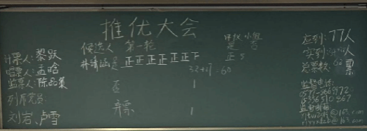 经过第一轮全体团员投票环节以及民主评议环节,根据投票结果,成为本次推优大会的推优对象为:林靖涵同志