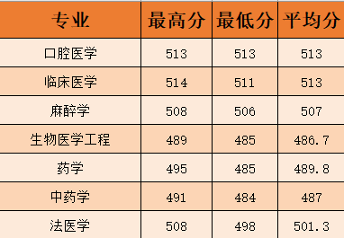 最高分514分,最低分484分,省控线428分。