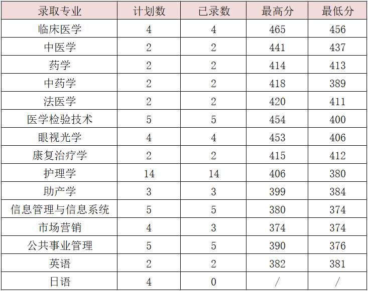 最高分465分,最低分374分,省控线343分。