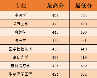 最高分459分,最低分418分,省控线373分。