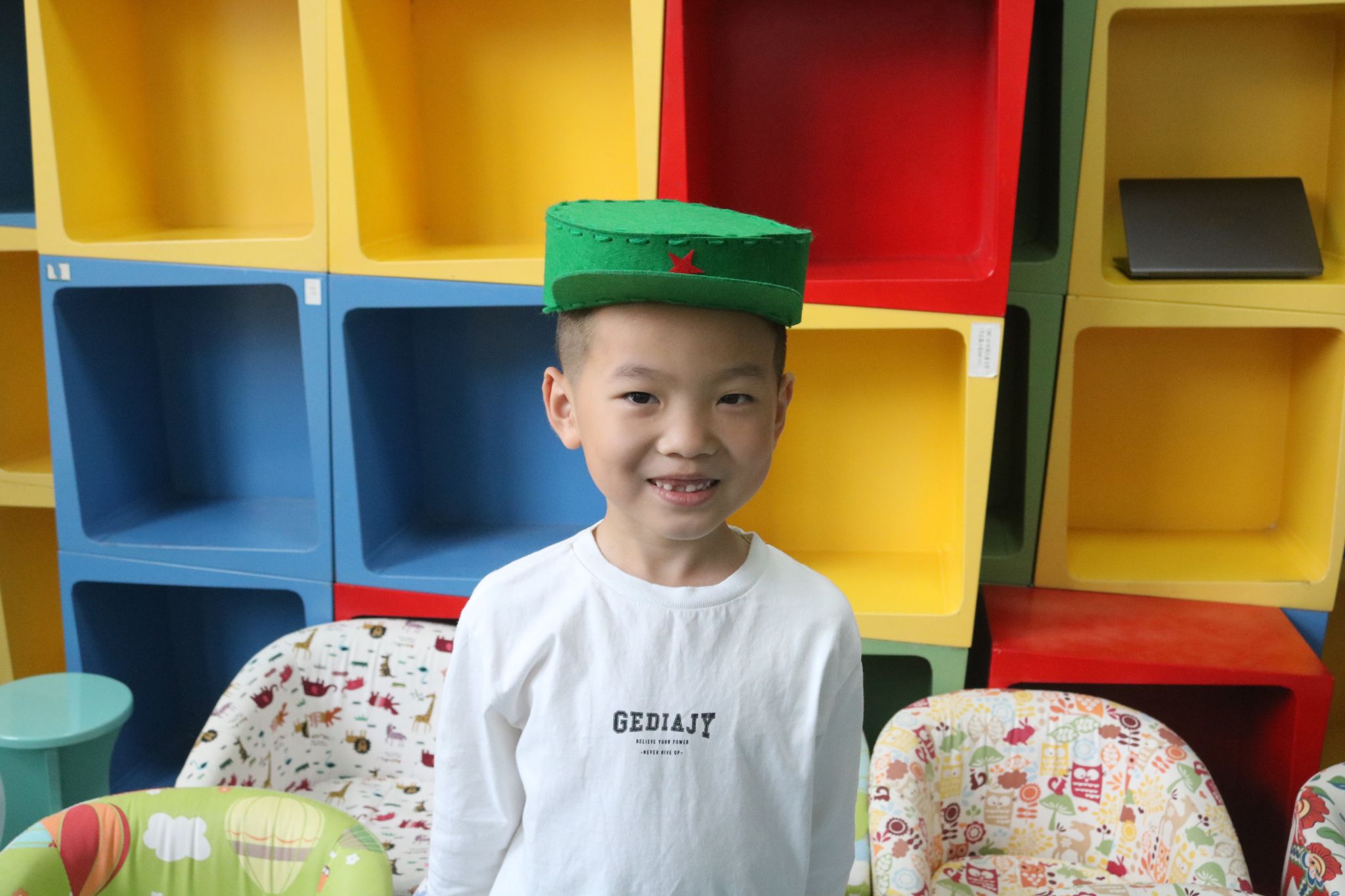 讲解完毕,进入充满乐趣的手工制作时间。在志愿者的指导下,小朋友通过自己的双手开始制作红军帽。一针一线都充满了他们对红军的敬意和对少年先锋队的憧憬。
