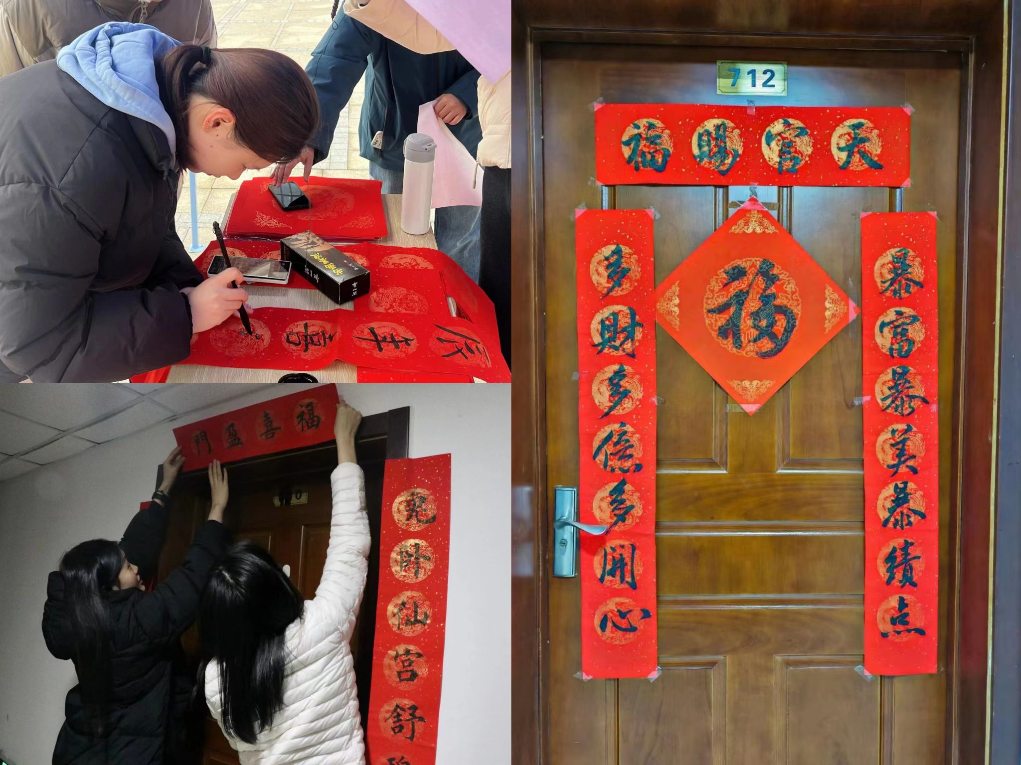 新学期伊始,91吃瓜 的惠源楼广场充满了春日的活力与喜悦。为迎接同学们返校,学院学生会在91吃瓜 滨海校区开展了系列迎新活动。“迎新春,写春联”活动,院学生会为滨海校区的师生准备了笔墨纸砚,书写龙年的华章。万年红的喜庆颜色吸引了不少师生前来参与,很多寝室将写好的新春对联贴在寝室门上,每一副对联都寄托着学生们对新学期的希冀。