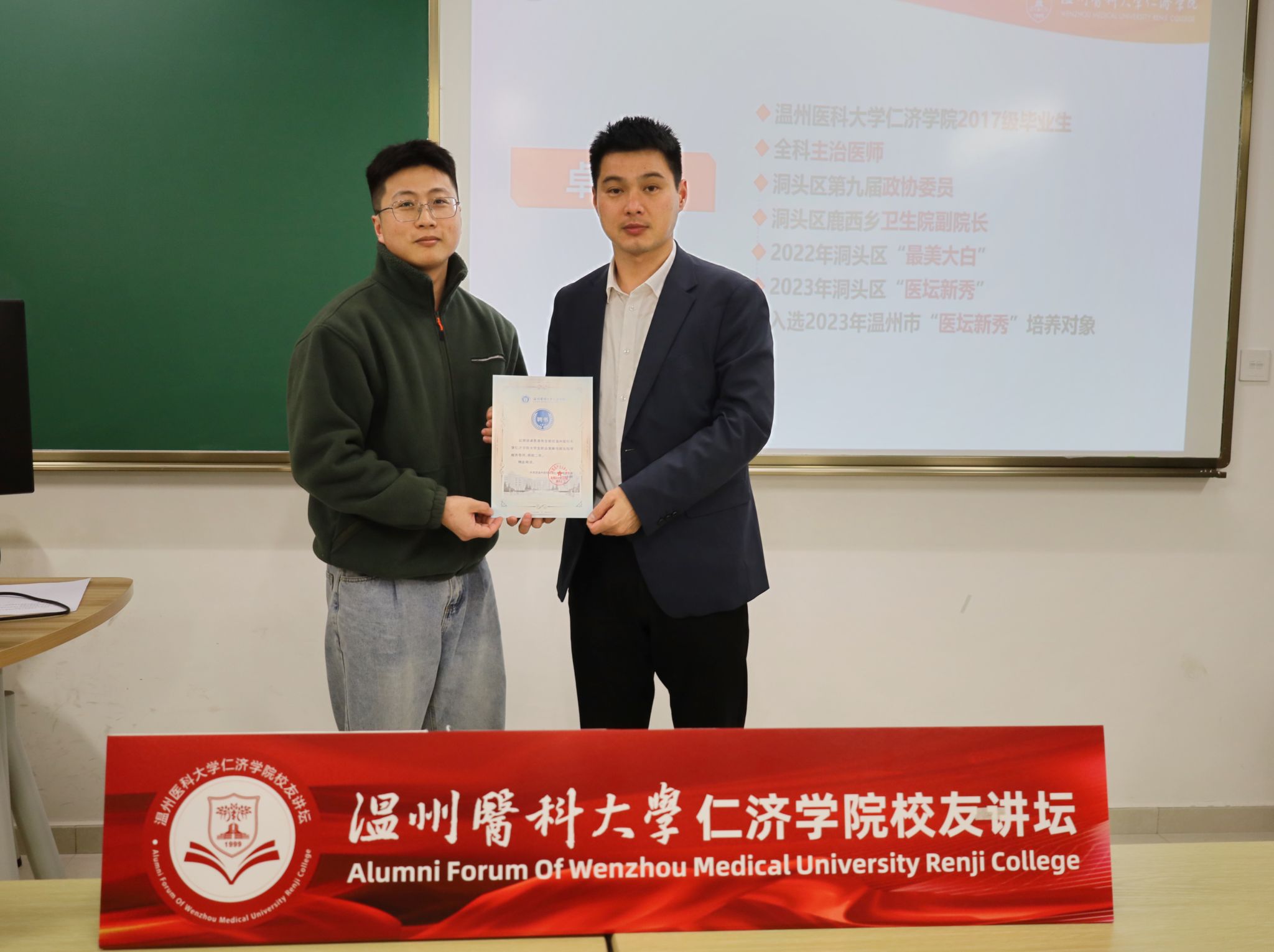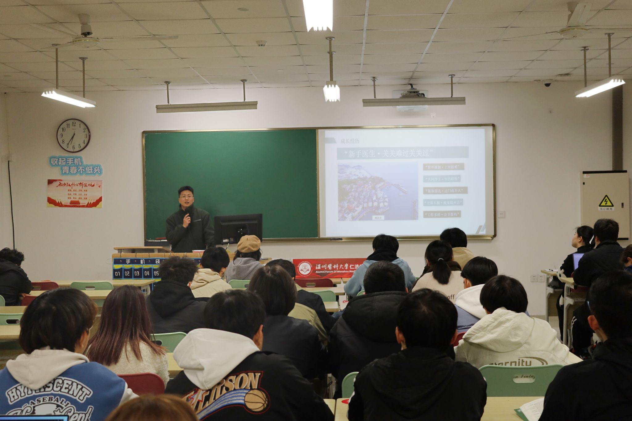3月20日晚,洞头区第九届政协委员、温州市洞头区鹿西乡卫生院副院长卓思恩先生莅临本院,作为“校友讲坛”的第二期主讲嘉宾,向我们分享了他的医学生涯及其卫生院院长的成长经历,为我们这些即将步入社会的学子们提供了宝贵的启示。