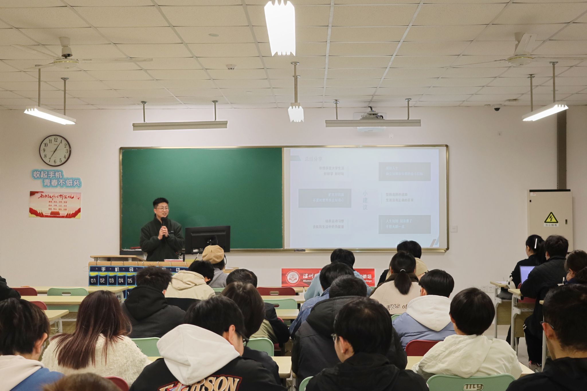 在分享的最后,卓院长向在座的同学们提出了几点人生建议:不断增广见识、培养良好习惯、明确人生目标,并勇于面对挑战、超越自我,跳出舒适圈,实现自己的人生价值。