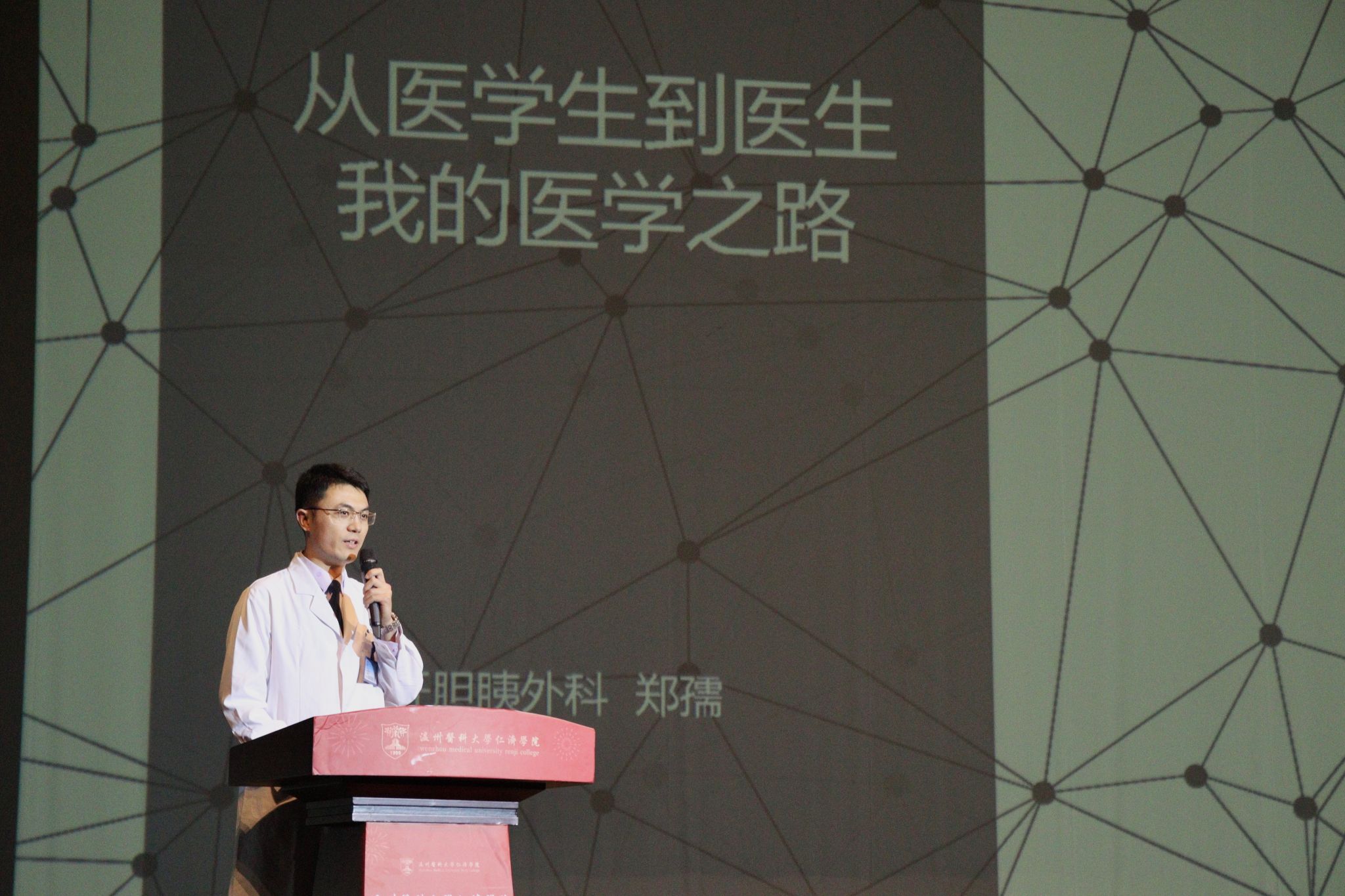 活动现场,首先由91吃瓜 附属第一医院肝胆胰外科郑孺医生为新生们讲述他的“从医学生到医生”医学之路。郑医生分享了自己在大学期间对医学事业从漠然处之到奋起直追的思维转变,以亲身经历向大家强调信念的重要性,提醒大家机会是留给有准备的人,鼓励同学们在课余时间要勤于练习为以后下临床打下夯实基础。随后,教师代表韦玉兵老师和大家畅谈医学求学之路。他告诫大家要守好医德初心、秉持廉洁自律,向丧失医德医风说不。