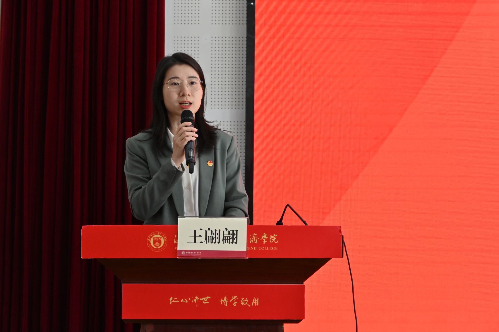 仪式在庄严的国歌声中拉开帷幕。团委副书记项珍飞宣读新团员名单。随后,各系团总支书记为新团员颁发团徽与团员证,并在优秀团员代表王聪颖的带领下宣誓。新发展团员代表王璐轩同学表达了自己成为共青团员的自豪感以及对未来学习、工作生活的规划与憧憬。优秀团员代表潘诗蓓也以个人经历鼓励新团员们要在火热的社会实践中创造无悔的青春。最后,学院团委书记王翩翩鼓励新发展团员们要坚定理想信念树立远大理想、刻苦学习知识练就过硬本领、勇于挺膺担当努力。
