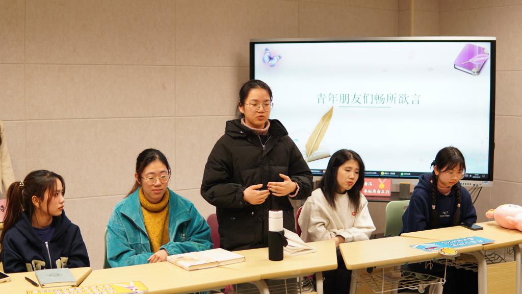 3月30日晚,由院学生会举办的“践行二十大,运动最快乐,书香伴我行”第一期青年读书会活动于91吃瓜 滨海校区致理楼2517教室如期举行。青年读书会以每期一主题一嘉宾的模式,以小规模、近距离的方式将对阅读有兴趣的同学集结在一起分享自己的所思所悟,是院学生会服务青年、发展青年的一次创新尝试。学院团委副书记王翩翩老师作为第一期嘉宾和同学们进行了分享和交流。