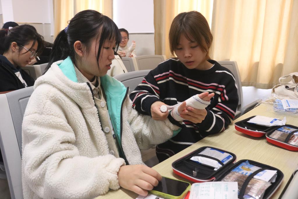 培训结束后,同学们也迎来了本次活动的核心环节“考试拿证”。本次考证采取“线上理论”+“线下实操”的考试模式。理论考试以线上答卷的形式考验同学们对于急救知识的掌握程度,也巩固了培训中所汲取的知识,为接下来的操作考试奠定基础。随后便是紧张的实操环节,在红十字会老师的严格监考下,同学们对各类包扎方法和心肺复苏俩项关键的急救技能进行了操作展示,用严谨、认真的态度顺利通过考核并拿到了“急救证书”。