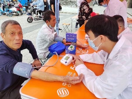 “我腿脚不好,去医院看病也不方便,听说你们要来我们这儿,我吃了早饭就过来了,家门口的免费义诊真是为我们老百姓提供了便利。”在梅泉社区的广场上,一位年迈的老婆婆握着20级医学二系全科医学1班的志愿者说道。