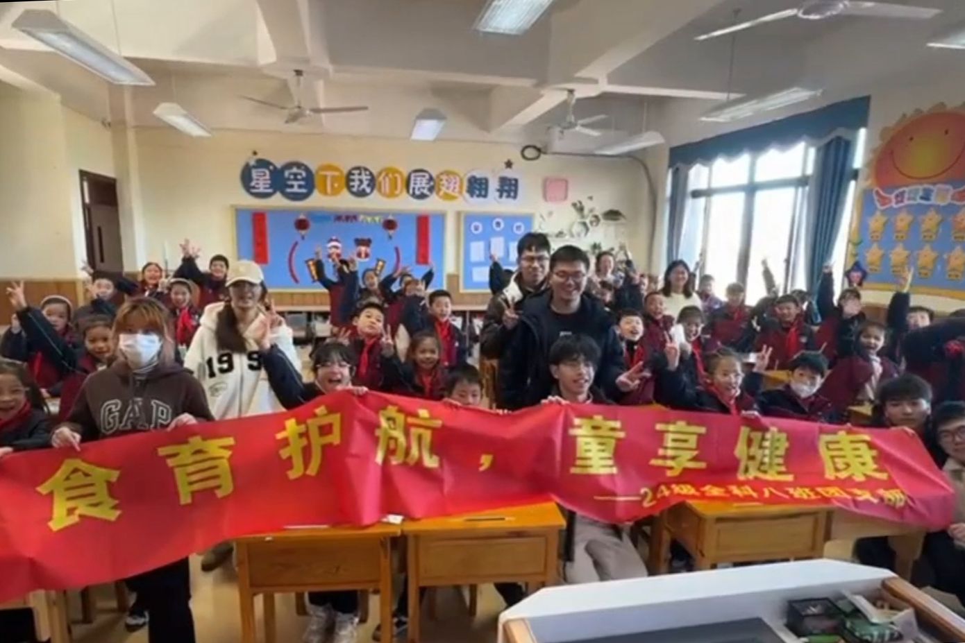 24级全科8班团支部走进洞头区实验小学,精心设计了包含知识讲座、趣味竞赛和家庭联动的多元活动,同学们通过生动讲解与互动游戏,循序渐进地引导儿童养成健康饮食习惯,帮助他们掌握科学选择饮食的能力。