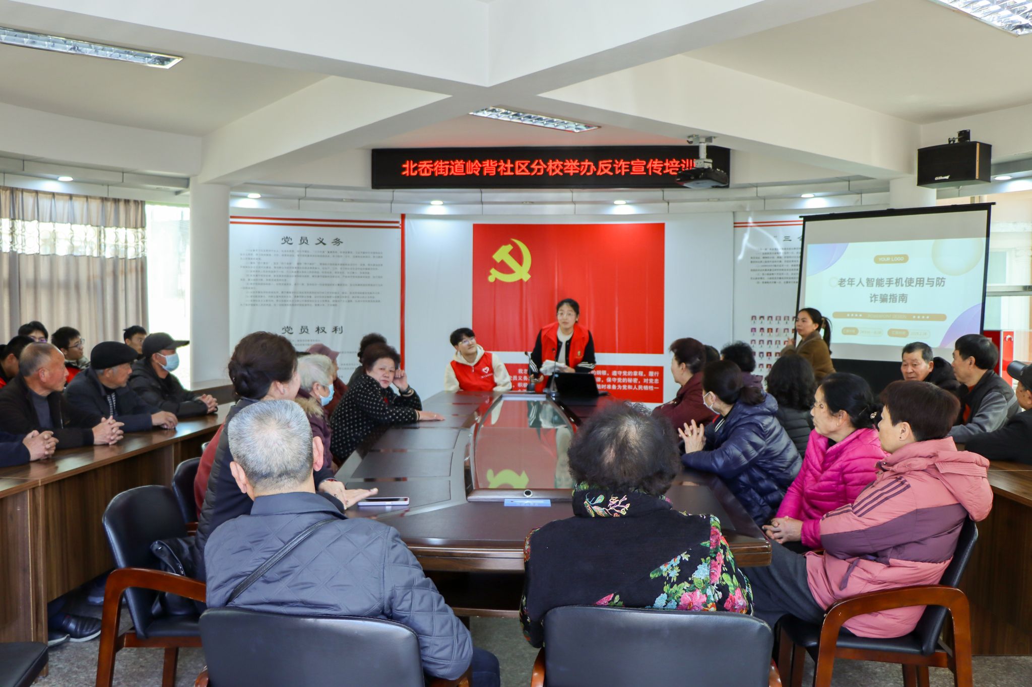 24级全科2班团支部走进岭背社区开展防诈宣传教育活动,通过设置模拟诈骗场景、组织防诈知识问答等环节,让老年人在安全环境中沉浸式体验骗局过程、学习防诈小技巧,并提供一对一反诈指导与帮助。