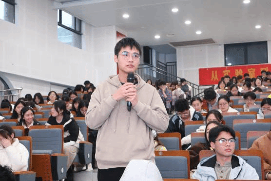 在“求学叙事”环节,潘博士以平易近人的姿态,讲述了他从新昌制药厂质检实习的基层经历,到实验室中通宵达旦的科研攻坚,再到省级医院科研与临床相结合的探索之路。十年间,他不仅在国际顶级期刊发表多篇论文,还成功获批2项国家自然科学基金项目。这一历程不仅印证了“板凳要坐十年冷”的科研真谛,更向师生传递了坚持与积累的重要性。