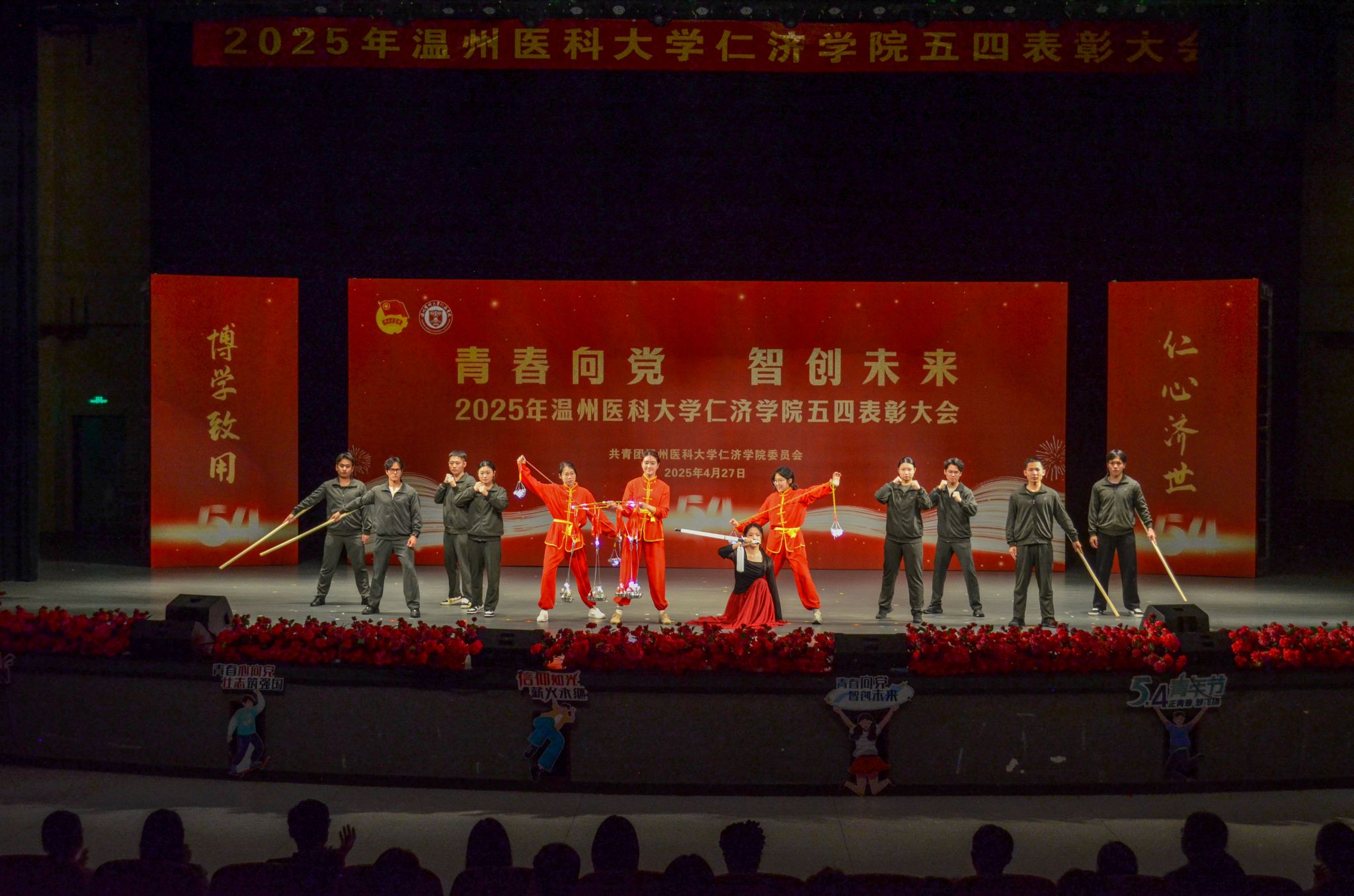 为传承“五四精神”、纪念五四运动106周年,4月27日,学院“青春向党,智创未来”2025年五四表彰大会在滨海校区会堂举行。学院领导彭红雷、林体排、戴建春、姜旭英、张树辉、张立康出席大会出席大会并为获奖青年代表颁奖。相关部门、各系团总支书记和青年代表共1200余人参加本次表彰大会。