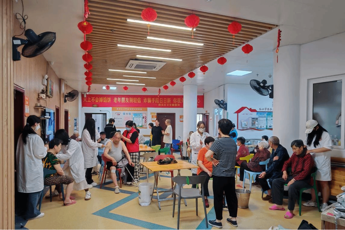 活动伊始,志愿者与老人们围坐在一起,在送上节日粽子的同时用亲切的温州方言分享端午习俗,从屈原的故事到家门口的艾草香,欢声笑语在敬老院的活动室里此起彼伏。在健康服务环节,志愿者们发挥专业所长,为老人提供血压、血糖测量及口腔健康检查,并结合老年群体常见的高血压、关节炎等问题,现场演示艾灸和穴位按摩等中医理疗技巧。