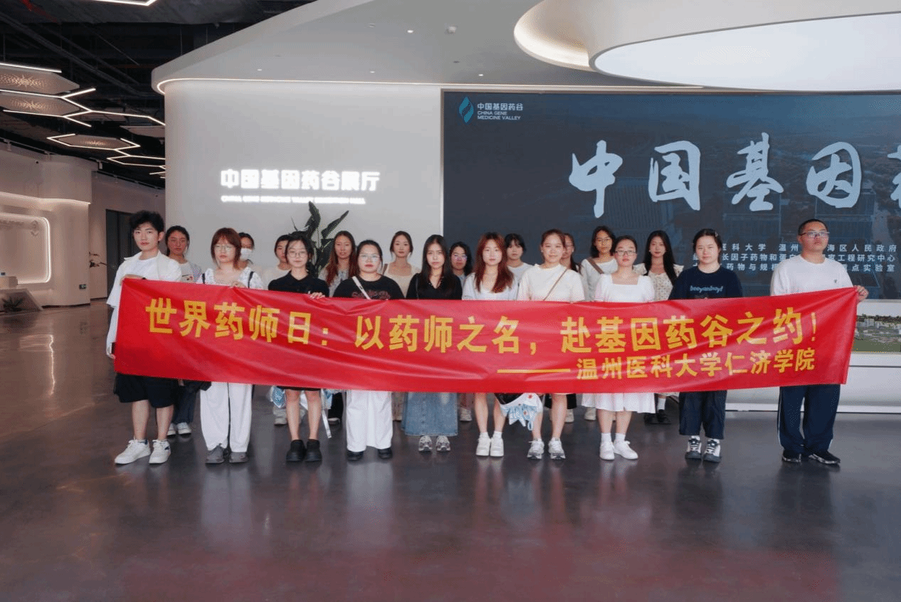 为拓展科研视野,学院还分批组织学生参观李校堃院士实验室与基因药谷。在院士实验室,学生近距离了解了生长因子类药物的研发进展与转化路径;在基因药谷,学生深入考察了协同创新平台的建设成效,包括多项全球领先的技术成果与产业化项目。通过走进高水平科研平台,学生切身感受到温州在生物医药领域的创新活力与发展潜力,进一步坚定了投身医药事业的信念。