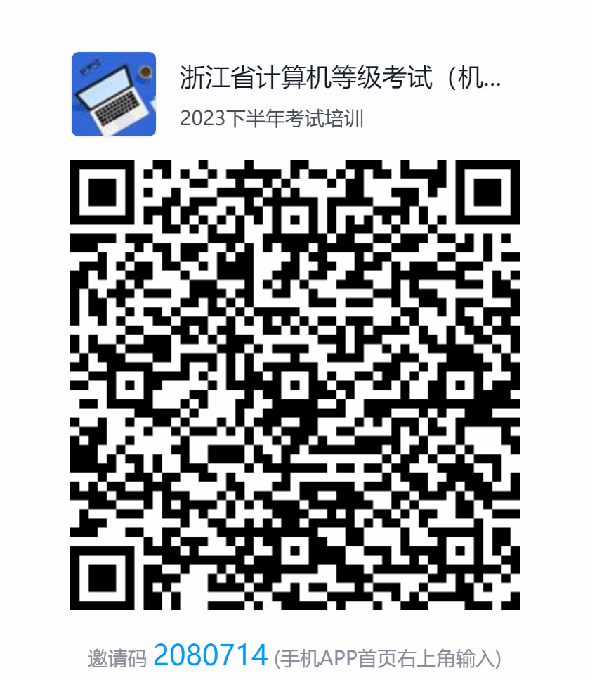 4.浙江省计算机等级考试的考生,可扫描下方学习通邀请码,选择相应的语种进行学习,提前熟悉考试内容及流程。