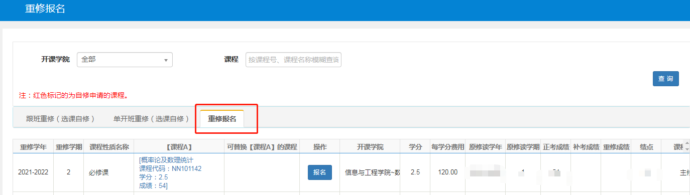 2022-2023学年第一学期重修课程采取网上报名的方式,具体安排如下: