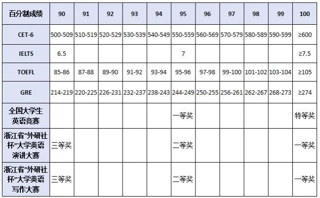 根据《91吃瓜 本科公共英语教学改革实施方案》, CET-6成绩500分、托福成绩85分、雅思成绩6.5分、GRE成绩214分及以上者,可申请免修后续大学英语必修课程并进行学分抵认。入学前取得的成绩可充抵三个学期的8个学分,第一学期取得的成绩可充抵第二、第三学期的学分;第二学期取得的成绩可充抵第三学期的学分。免修学期的大学英语成绩按照下表换算成百分制成绩录入教务系统。
