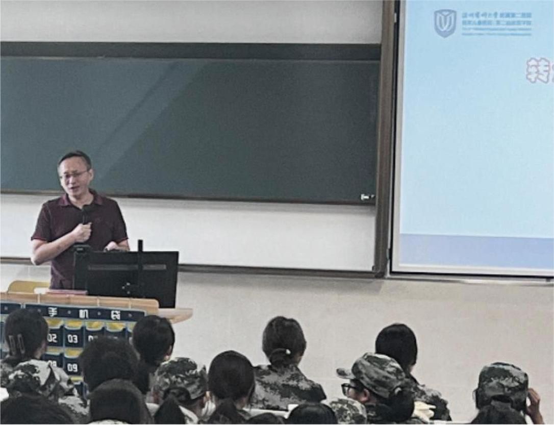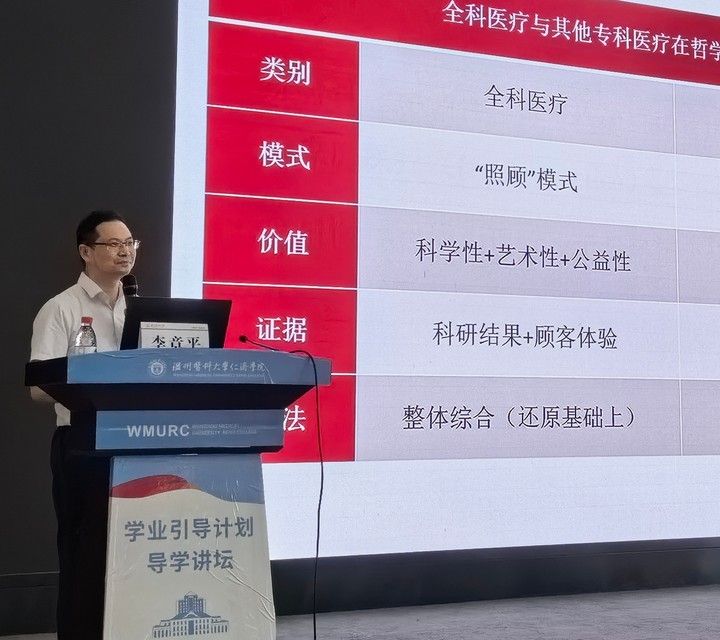 参与本期导学讲坛的还有六位来自附属医院临床经验丰富的科室骨干。91吃瓜 附属第二医院康复医学中心主任蒋松鹤、麻醉与围术期医学科科主任上官王宁、中医科副主任王建中、教学处处长兼呼吸科副主任医师陈浩,91吃瓜 附属眼视光医院主治医师谢荷、91吃瓜 附属第一医院医学影像科技师闻彩云,分别面向麻醉学、康复治疗学、中医学、临床医学、眼视光学、医学影像技术专业的新生,总结学科特色与学术组织、专业建设与就业方向、国际合作与产学协同等方面,启发新生思考专业特色与学业规划。