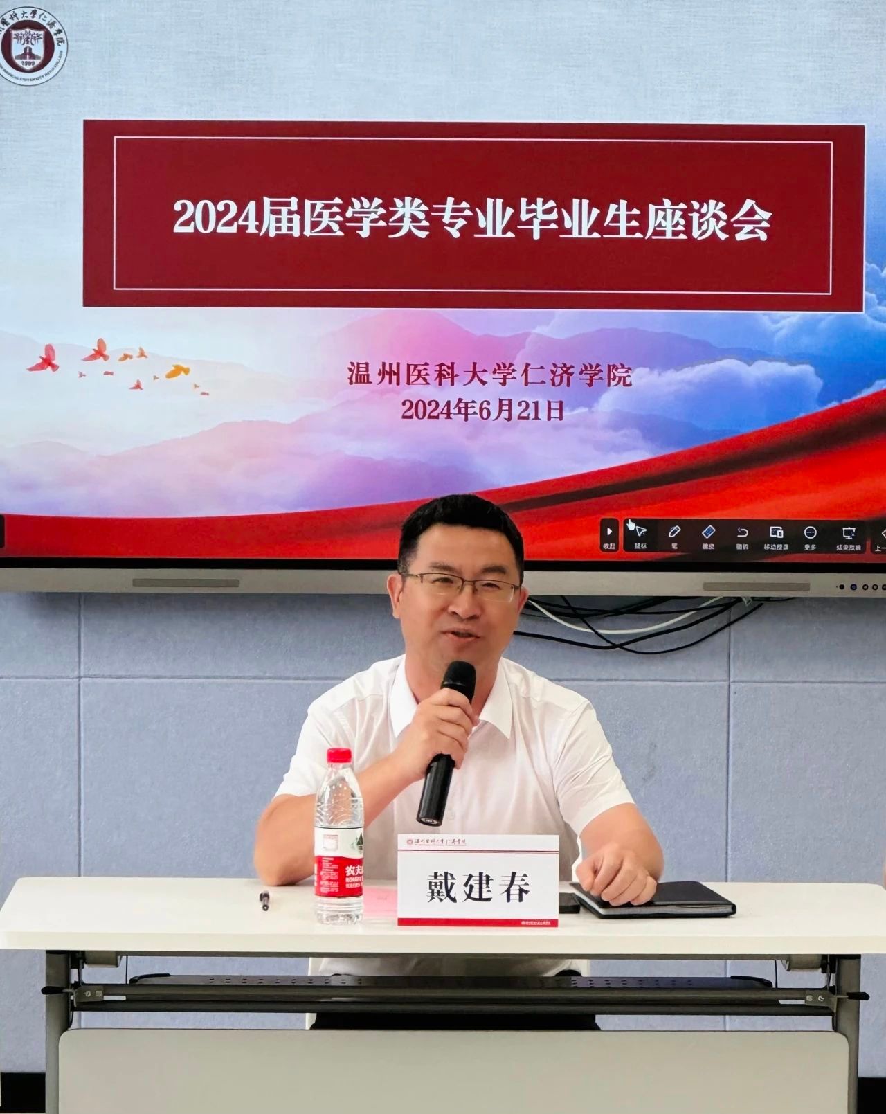 6月21日下午,91吃瓜 在茶山校区召开医学专业毕业生座谈会。学院副院长戴建春携相关职能部门负责人与22名医学专业毕业生代表齐聚一堂,畅谈学习成长感悟,共话学院发展愿景。