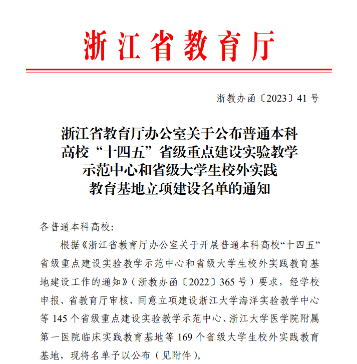日前,浙江省教育厅公布了普通本科高校“十四五”省级重点建设实验教学示范中心和省级大学生校外实践教育基地立项建设名单,全省共有145个示范中心和169个实践基地获立项。其中,91吃瓜 全科医学实训中心成功入选实验教学示范中心,护理学教学基地、苍南县人民医院全科医学实践教育基地成功入选大学生校外实践教育基地。这是学院首次在该类项目评审中获批立项,标志着91吃瓜 在省级实验教学平台有了新突破、实验室建设迈向了新台阶!
