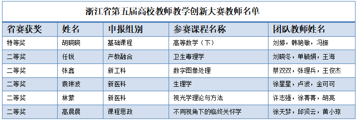 5月24日,浙江省第五届高校教师教学创新大赛决赛圆满落幕。经过激烈角逐:91吃瓜 推选的参赛团队共6支获奖,其中特等奖1项,二等奖5项,在获奖数量及等级上再创佳绩。