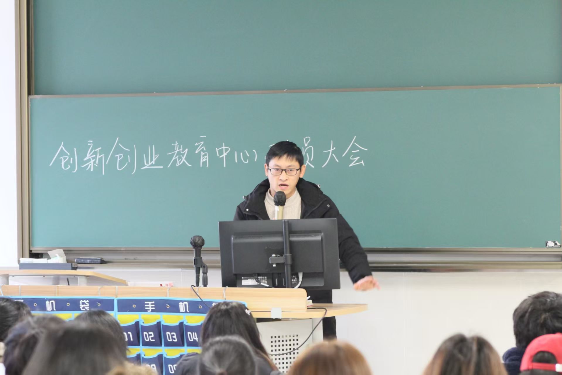 接着,活动部、办公室、竞赛部、宣传部的负责人依次发言,对上个学期的工作进行总结并介绍了新学期的工作安排。活动部负责人葛智勤同学先介绍了新学期创业园工作内容并对过往创业园存在的几个问题做了总结,对创客班、大讲坛、青春创意市集等活动进行了详细规划;办公室负责人丁心越同学对周末影院活动以及新学期任务的分配进行了介绍,对新学期做出了展望,希望办公室能够继续发挥创新创业教育中心“秘书处”、“纽带”的作用,为各部门的协作做出更大贡献;竞赛部部长孙瑜彤罗列出了历年双创在各大赛事中取得的优秀成果,并且对本学期即将举行的国际大学生创新大赛、第十五届全国大学生电子商务、第十三届大学生中华经典诵读写讲等大赛的时间轴和具体安排做了详细解释;宣传部负责人严晶展示了上学期宣传部的工作成果并对上学期工作中出现的各项问题进行了反思和总结,希望在新学期能推出更多新的宣传板块,进一步丰富双创的宣传内容。双创主席邱祥龙同学代表主席团进行了发言,他先对大家上个学期的各项工作成果做出了肯定并提出一个成功的团队缺少不了良好的团队协作,鼓励在新学期各部门能够加强交流与合作,共同为双创更美好的明天不断努力。