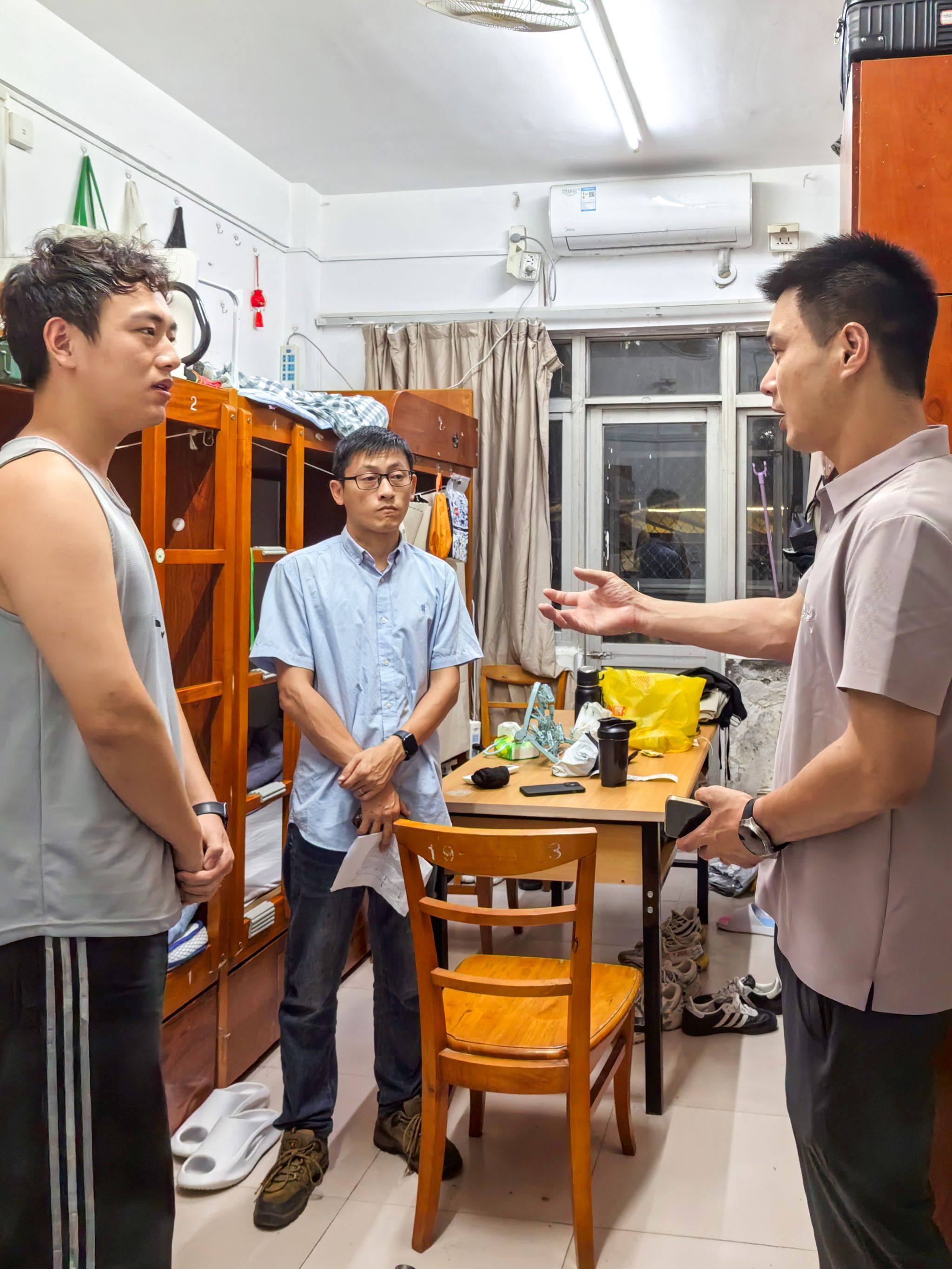 张立康一行详细询问了留校学生的备赛进展和生活需求,重点检查了宿舍用电安全、消防安全设施。他强调,暑期留校学生要严格遵守学校安全管理规定,提高安全意识,确保人身和财产安全。