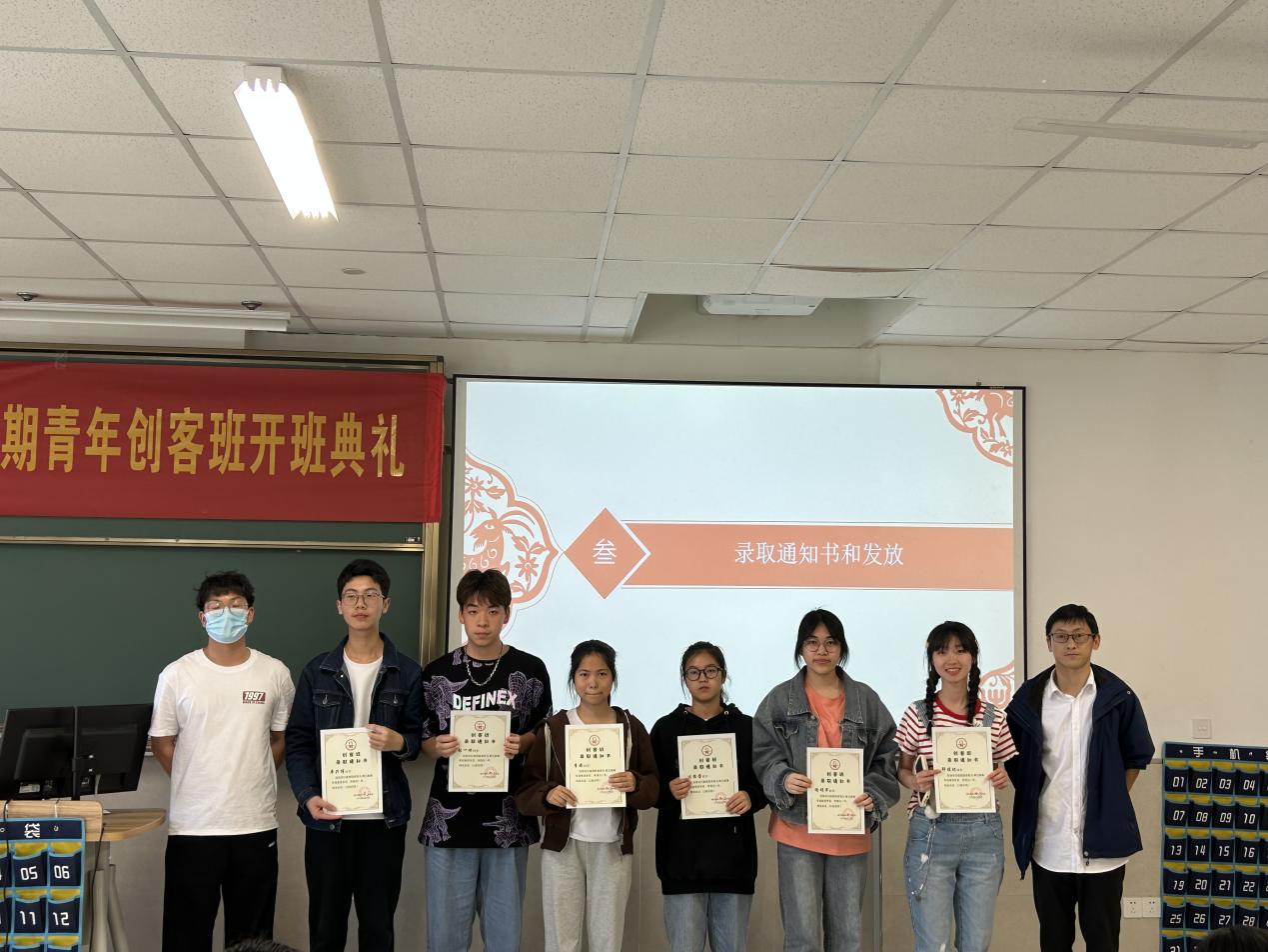 最后大家合影留念,用照片记录这意义非凡的时刻,由两位指导老师逐个为创客班学员颁发录取通知书,为庆祝新兴学子加入创新创业的行列。不仅如此,指导老师们及创新创业中心为大家精心准备了礼品:个性专属书签、订制版笔记本、书写钢笔、院会徽章