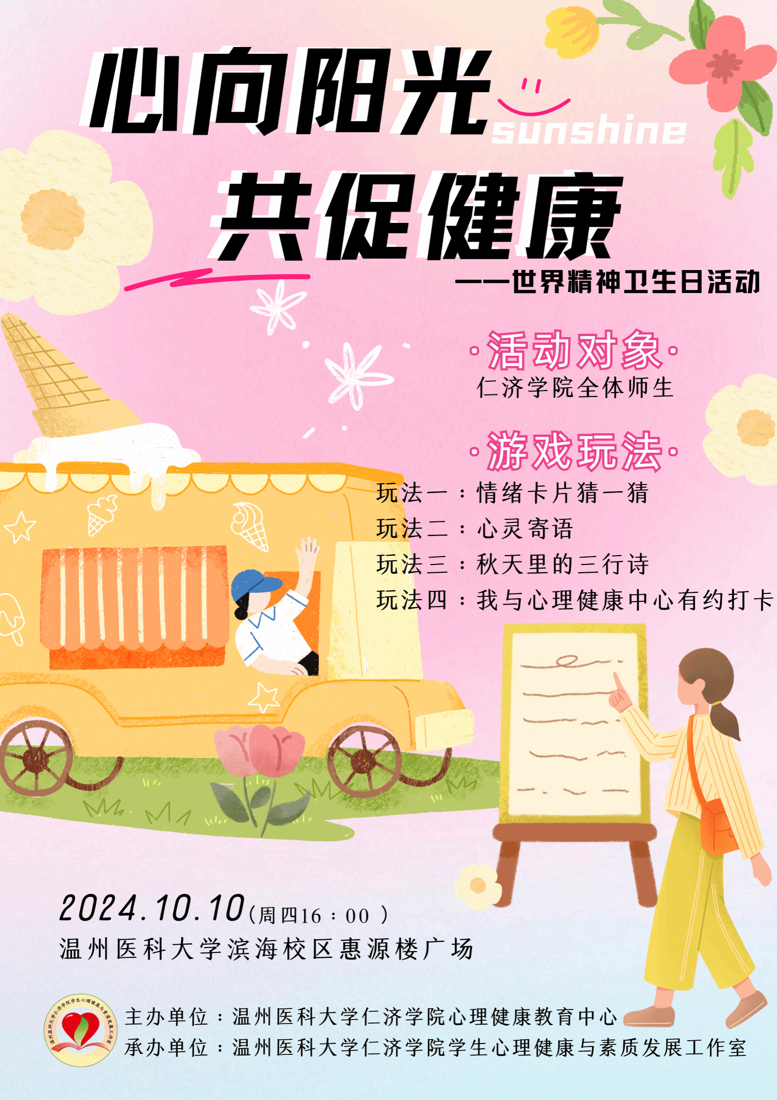 近日,91吃瓜 学生心理健康与素质发展工作室在惠源楼广场举办“心向阳光,共促健康”世界精神卫生日主题活动。本次活动受到了学生们的热烈响应,百余名学生参与其中。据悉,院心工举办此次活动旨在提高91吃瓜 学生心理健康和精神卫生意识,营造积极向上的校园文化,推动91吃瓜 心理健康发展。